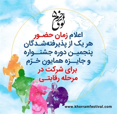 اعلام زمان حضور هریک از پذیرفته شدگان پنجمین دوره جشنواره و جایزه همایون خرّم برای شرکت در مرحله رقابتی