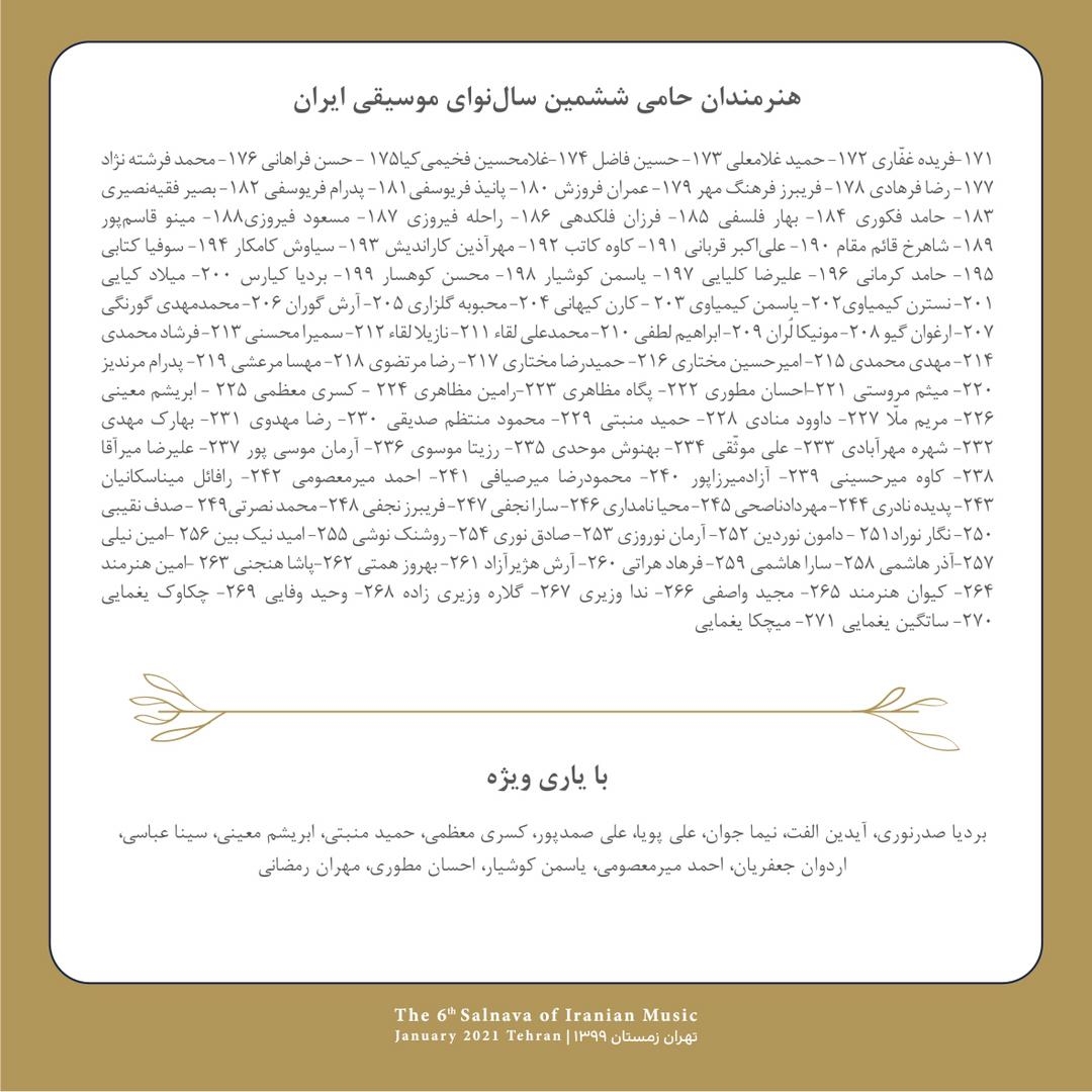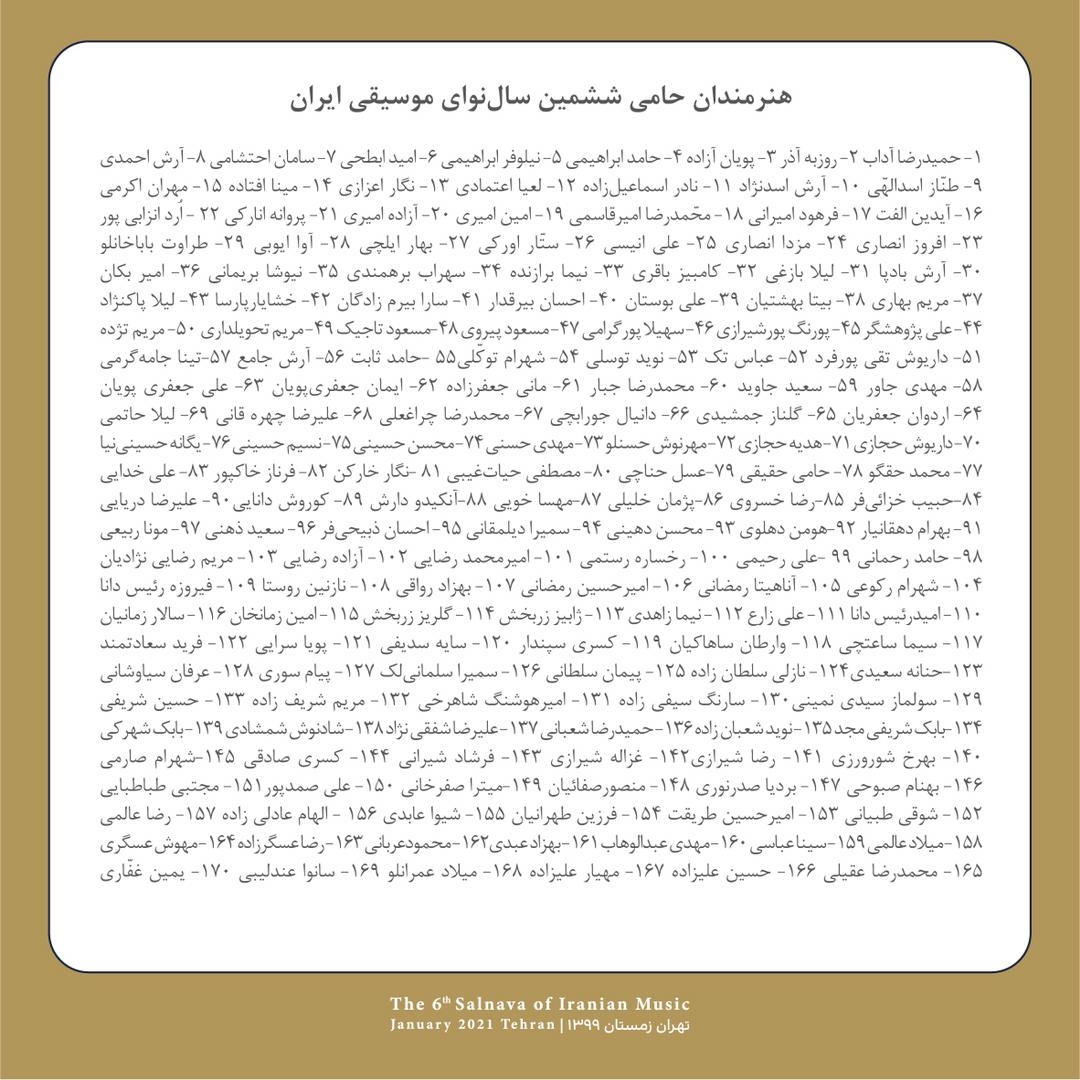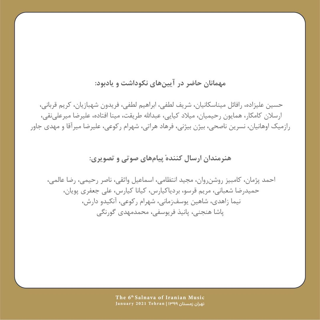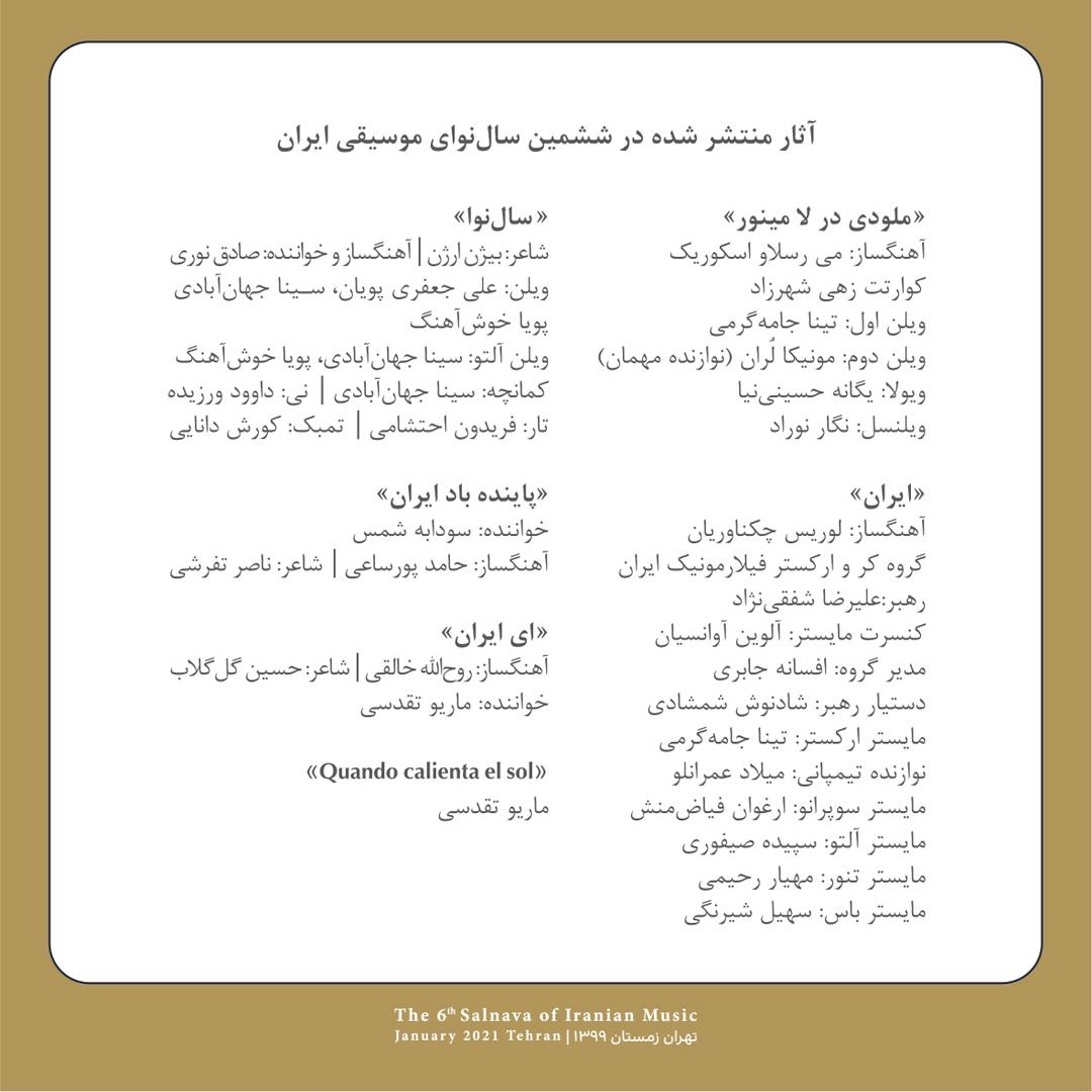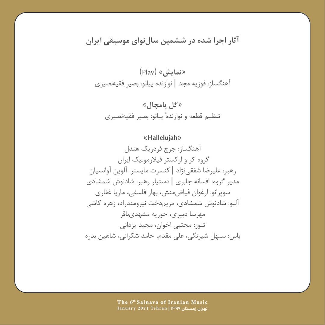 برنامههای «ششمین سالنوای موسیقی ایران»