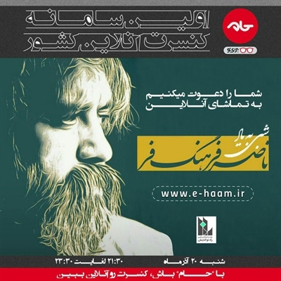 علاقمندان میتوانند از طریق سامانه کنسرت آنلاین کشور (حام) به آدرس اینترنتی www.e-haam.ir این مراسم را در روز شنبه 20 آذر 1395 ساعت 21:30 مشاهده بفرمایند.